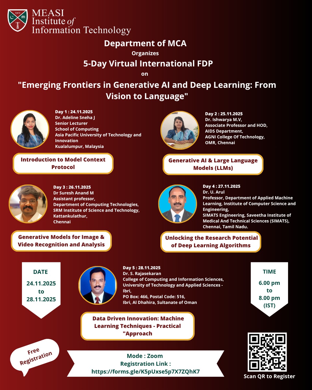 MEASI Institute of Information Technology is organizing 5 Days International FDP on “Emerging Frontiers in Generative AI and Deep Learning: From Vision to Language”