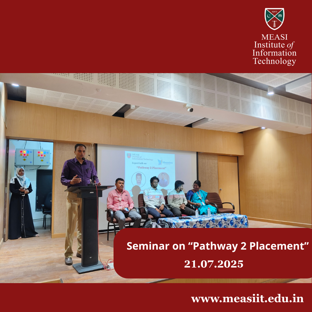 MEASI Institute of Information Technology proudly organized an Expert Talk on “Pathway to Placement” to empower our final year MCA students with industry insights and career guidance.