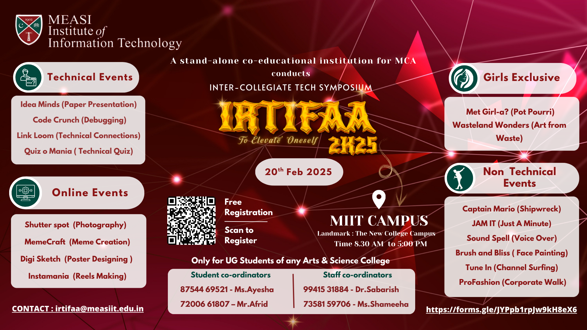 MEASI Institute of Information Technology is conducting “IRTIFAA 2K25” an Inter-Collegiate Tech Symposium on 20th February 2025