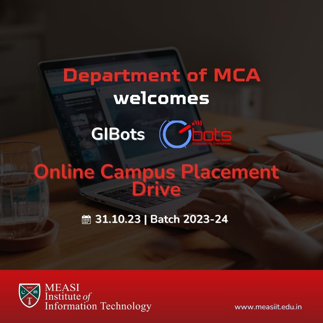 MEASI Institute of Information Technology is Organizing a Placement Campus Drive by GI Bots for the MCA Students of Batch 2023-24 on 31st October 2023.