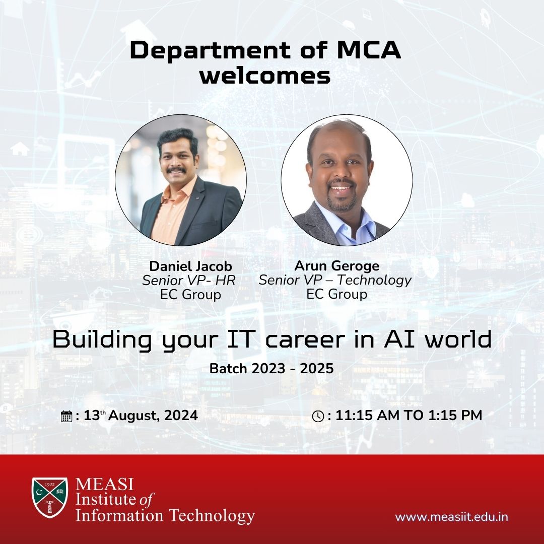 MEASI IT is organizing a seminar on Building your IT career in AI world on August 13th, 11:30 AM – 1:15 PM.