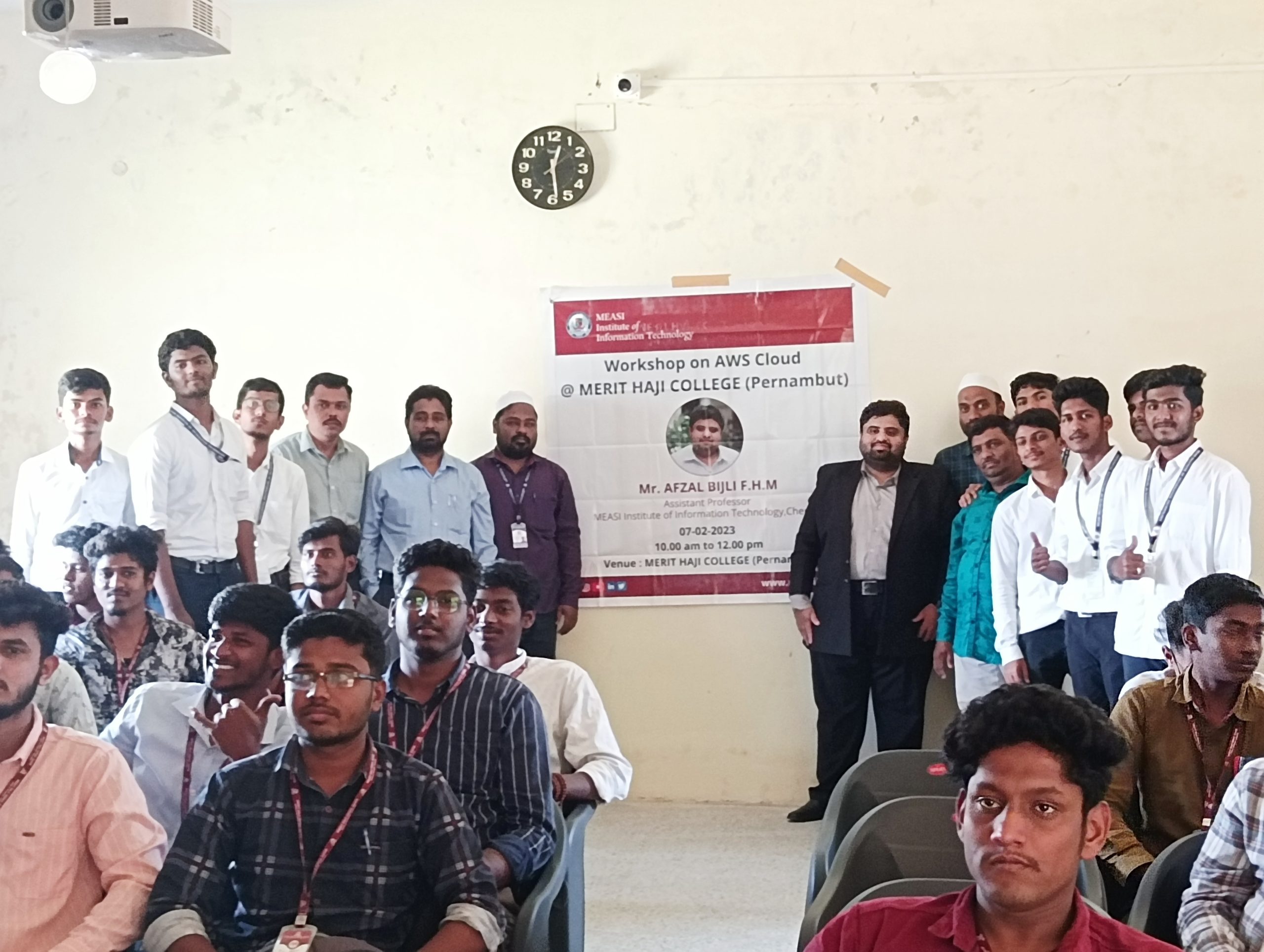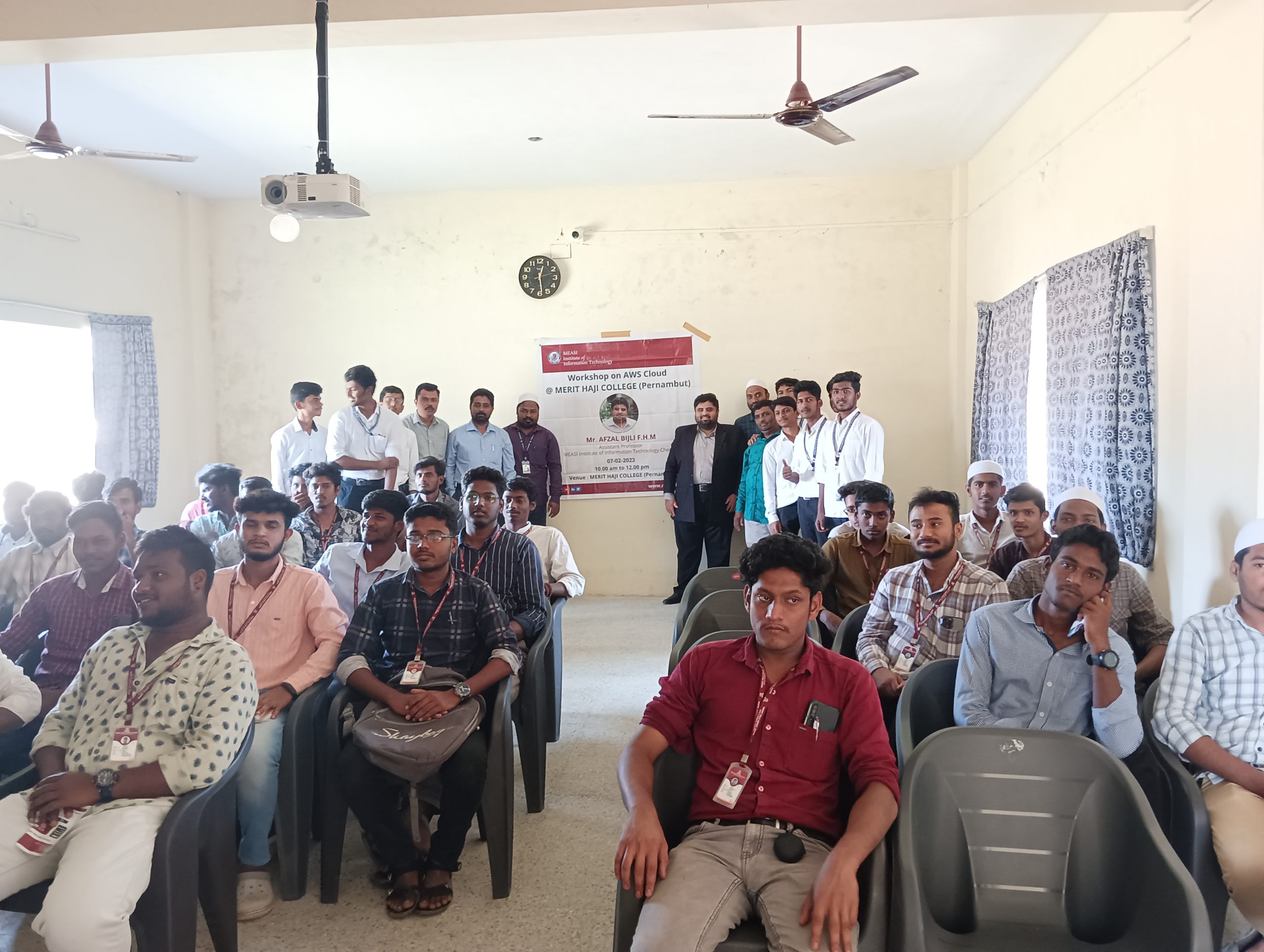 MEASI Institute of Information Technology conducted a workshop on AWS Cloud on Tuesday, 07th February 2023 from 10.00 am to 12.00 pm by Mr.Afzal Bijli FHM, Assistant Professor – MEASI IT, Chennai at MERIT Haji College(Pernambut).