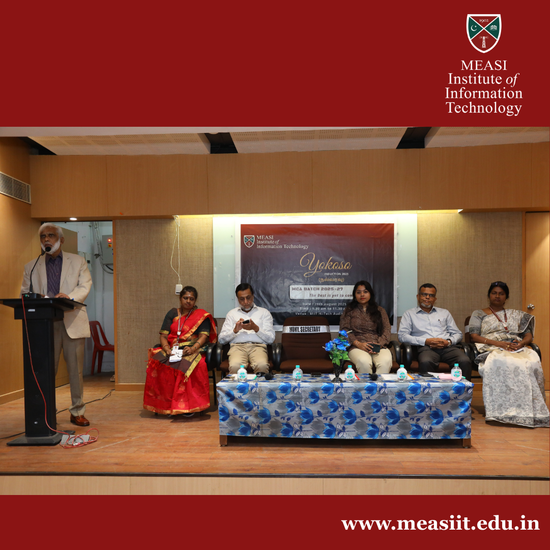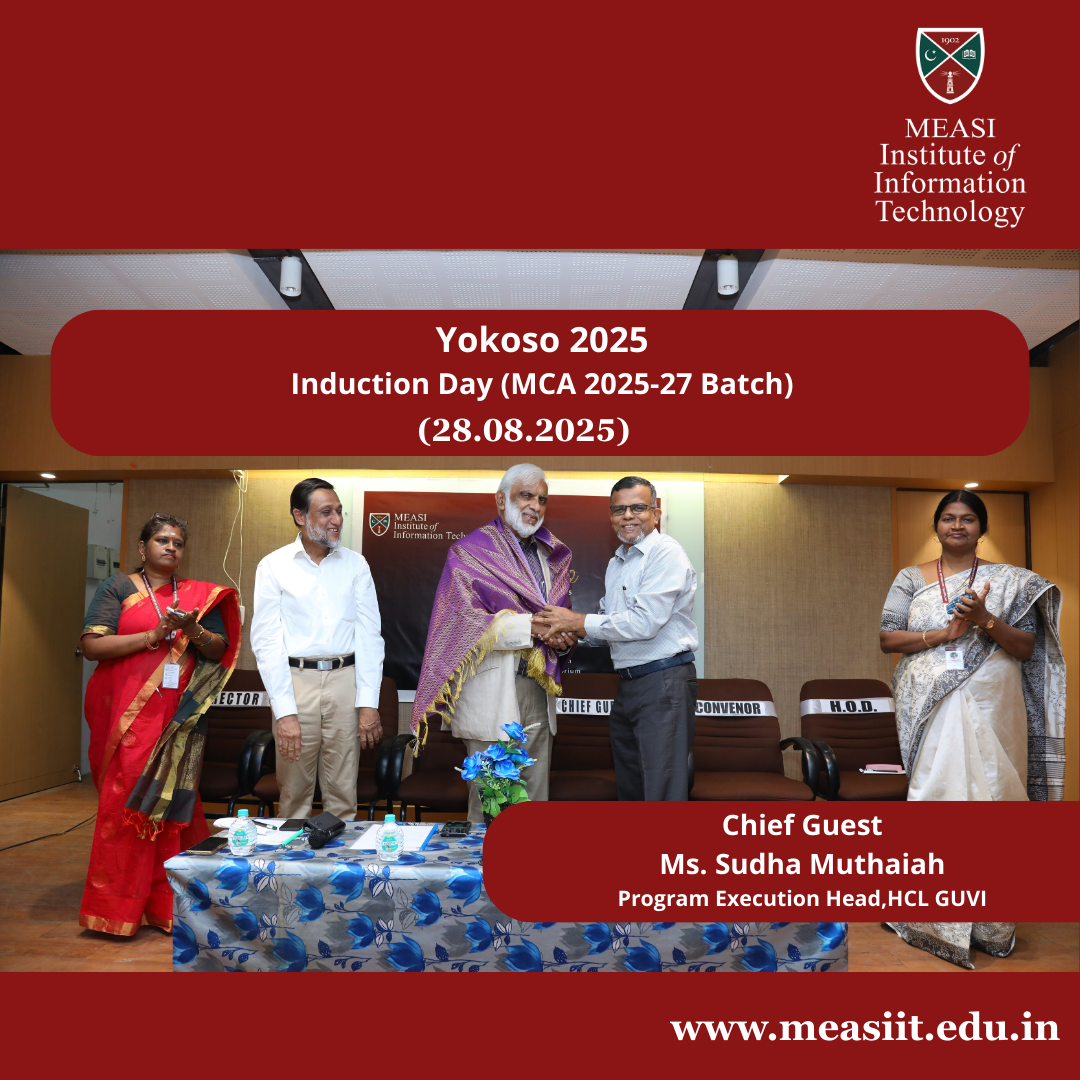 MEASI Institute of Information Technology successfully hosted YOKOSO 2025 โ€“ Induction Day for the MCA 2025โ€“27 Batch on 28th August 2025.
